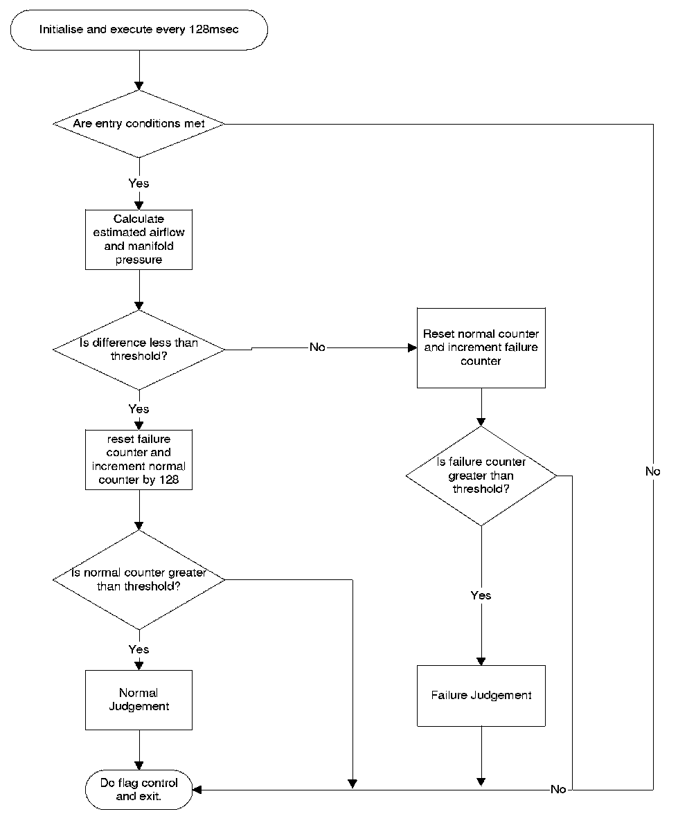Judgements of whether the MAP sensor is behaving correctly are made after the entry conditions have been fulfilled and the differences between the measured and estimated values are below calibrated thresholds. The MAP sensor is faulty if when the entry conditions are met, the difference between the actual and estimated values is greater than a calibrated threshold. The monitor has the ability to make a normal judgement followed by a failed judgement or vice versa as the monitor runs continuously whilst the entry conditions are met.