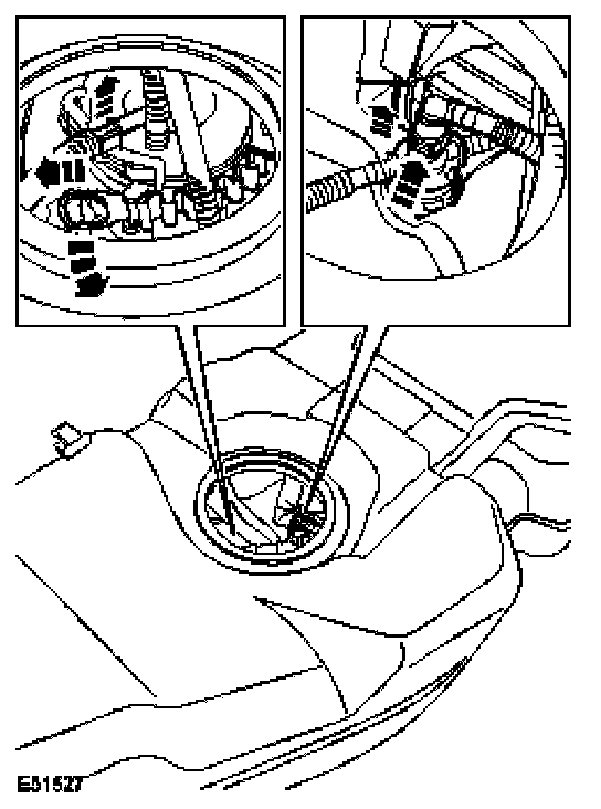 NOTE: The fuel pump module comprises of a rear fuel level sender, filter and a fuel pressure regulator. These components cannot be serviced separately.