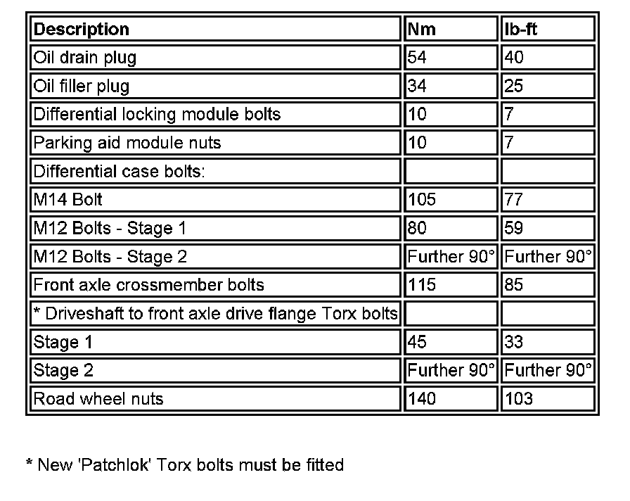 Torque Specifications