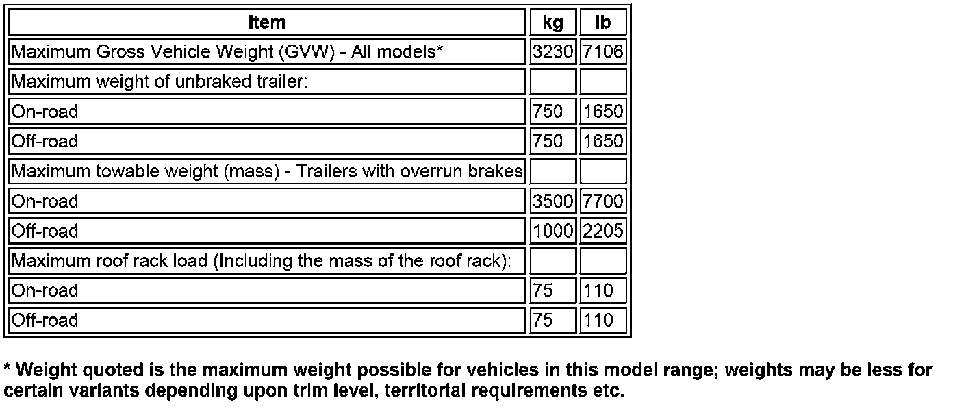 Vehicle Weights: