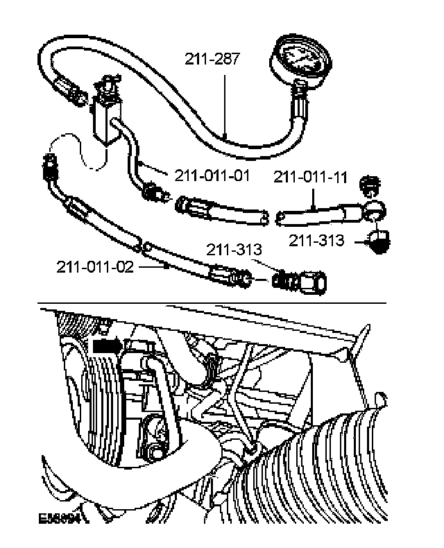 20. On completion of the test stop the engine, disconnect the battery ground cable and siphon the steering fluid from the reservoir.