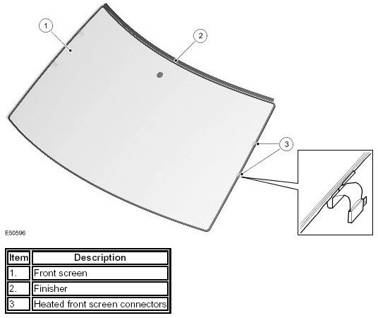 The laminated front screen is bonded, and sealed, to the body aperture using PU sealant. Heat bonded to the inner surface of the screen is the optical unit for the rain sensor and the interior mirror mounting boss.