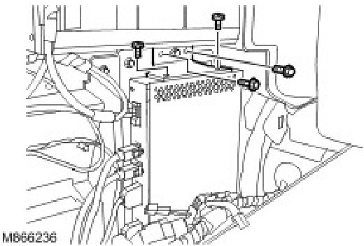 1. Install the DVD player to the information and entertainment assembly mounting bracket.
