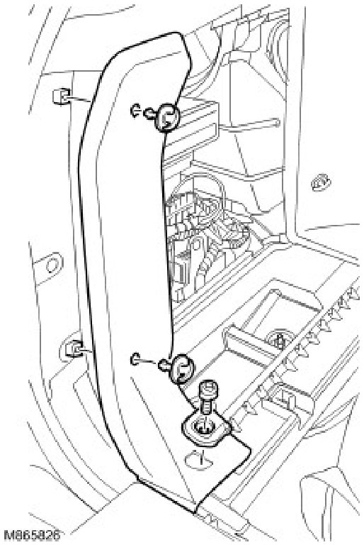 - Remove the 2 turn fasteners securing the LH finisher trim panel.