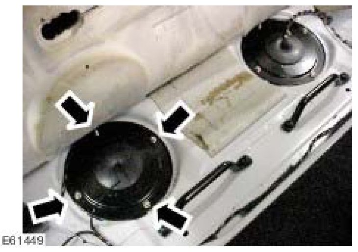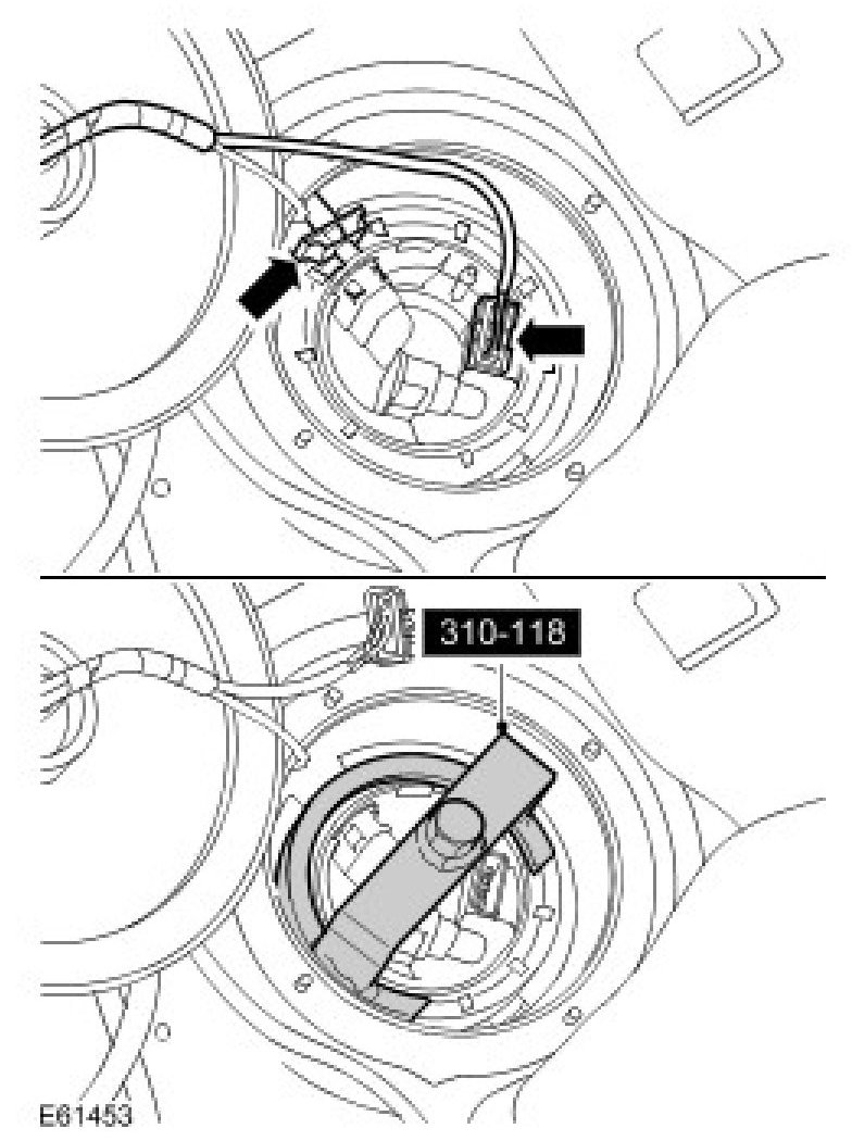 ^ Depress the clips and release the lower part of the pump and sender unit rearward.