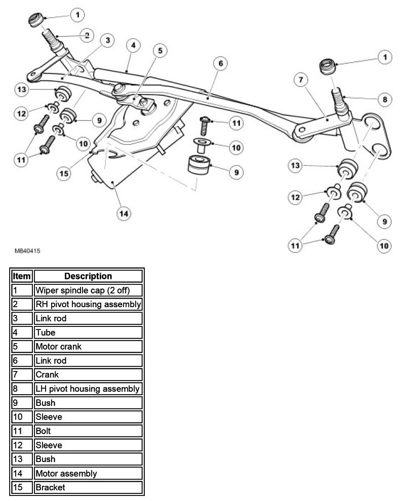 The wiper linkage and motor assembly are available as separate components. The wiper linkage differs between LH and RH drive models. The wiper motor is common to LH and RH drive models.