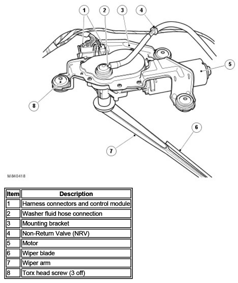 Diagnostic information for the wiper system is available and can be retrieved using the Land Rover approved diagnostic system.