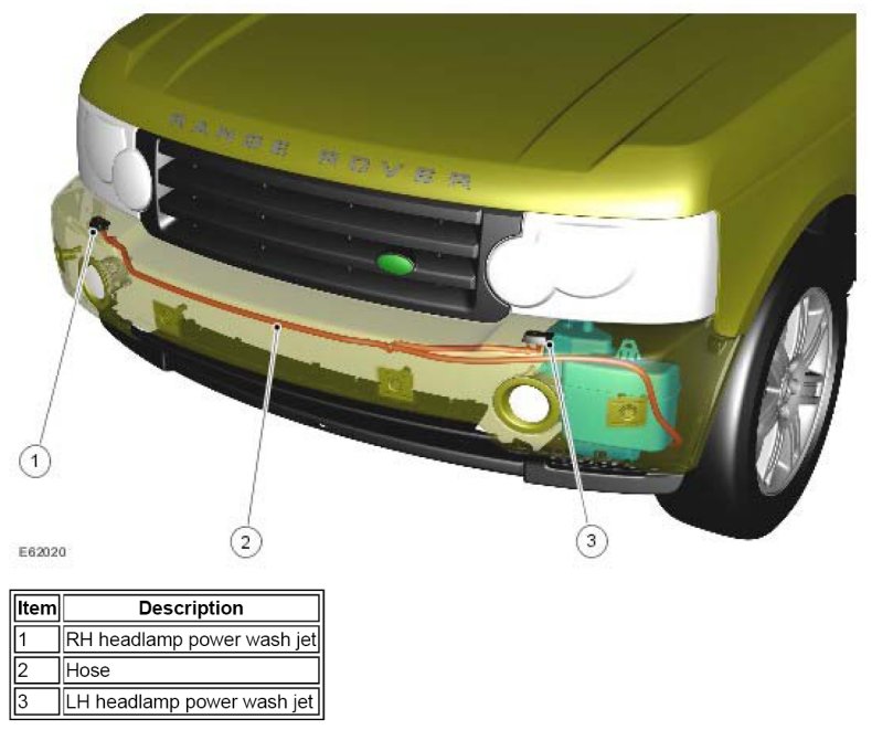The headlamp power washers are only active when the headlamps are switched on and the ignition is on. The power washers are controlled by the GEM, which limits their operation to preserve washer fluid in the reservoir.