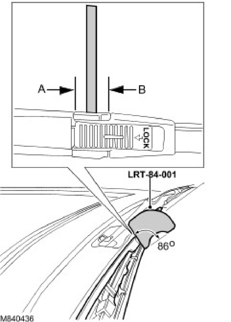 4. Align the special tool between points A and B on the windshield wiper pivot arm.