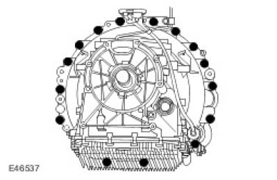 7. Install the transmission retaining bolts.