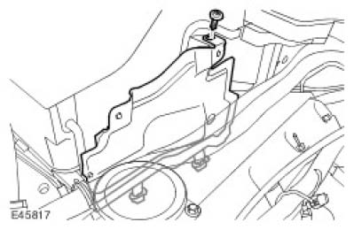 32. Install the engine compartment upper heat shield.