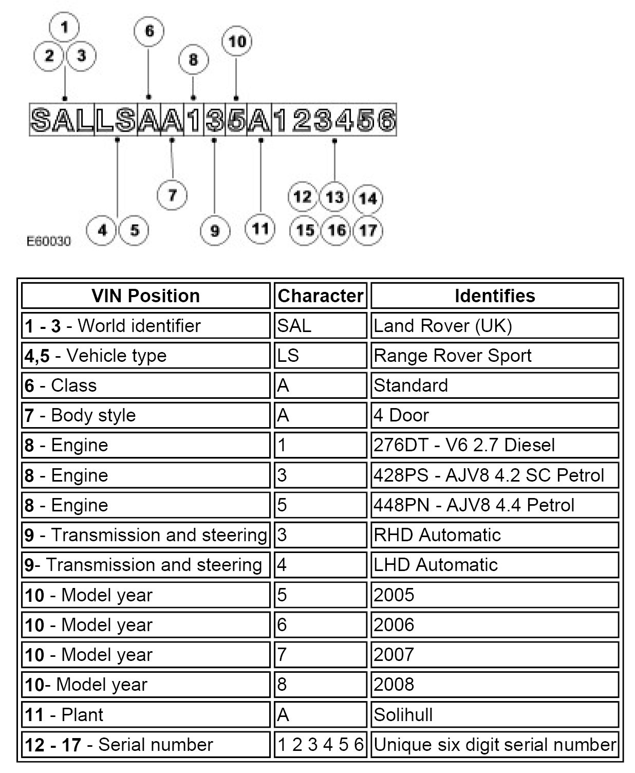 4.4 Litre V8 and 4.2 Litre V8 SC Petrol Engine Serial Number