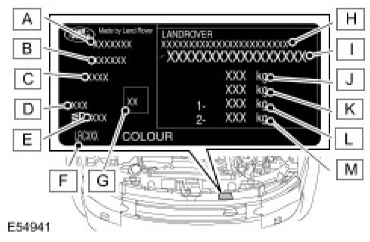 1. Stamped on the side of the RH longitudinal member, rearward of the body front mounting.