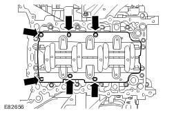 ^ Remove the crankshaft main bearing carrier retaining bolts in the indicated sequence.