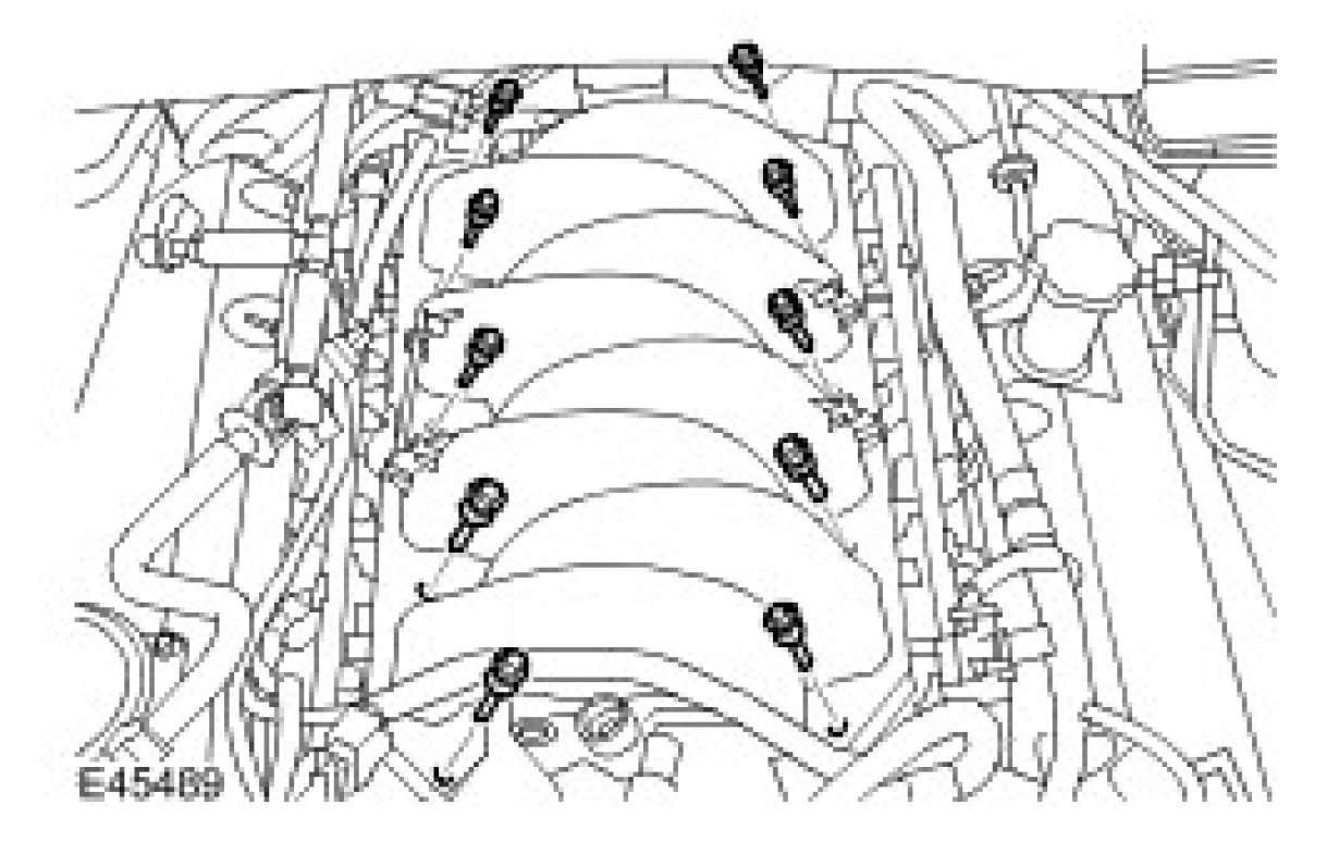 16. Remove the 10 intake manifold bolts.