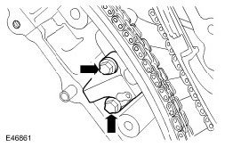 14. Install the RH secondary timing chain tensioner retaining bolts.