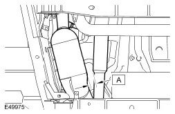 4. CAUTION: Make sure there is a clearance (A) of 25 mm to 30 mm between the closest points of the LH catalytic converter and the front driveshaft.