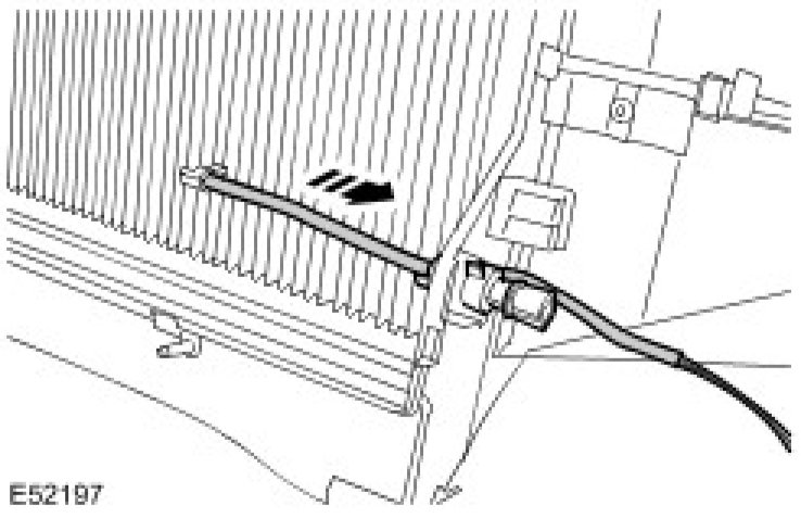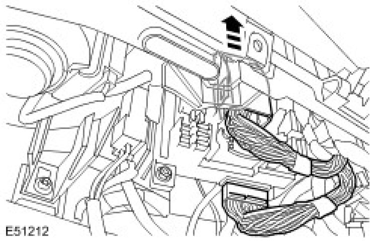 14. If installed, disconnect the instrument panel center reinforcement fibre optic cables. Disconnect the electrical connector.
