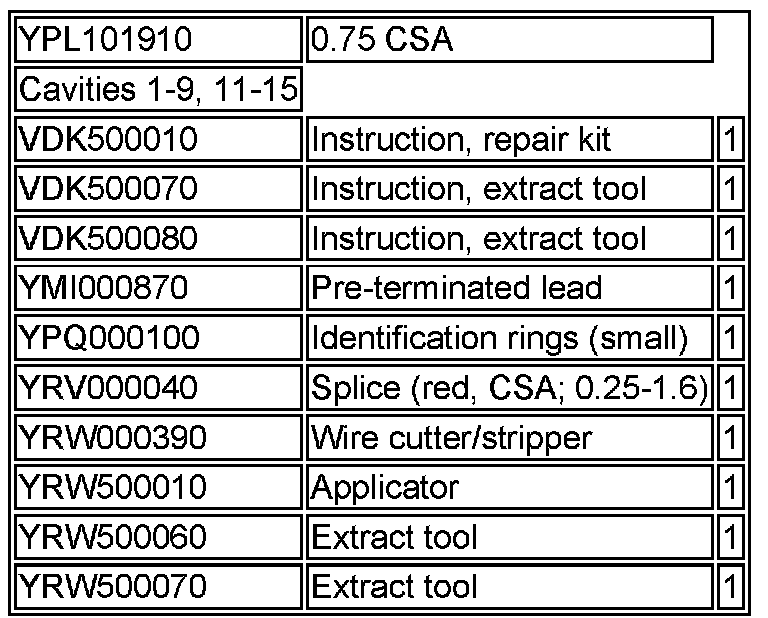In addition to the items included in the harness repair kits, part harnesses are also available to effect repairs on the vehicle. These part harnesses are available through the normal parts ordering process.