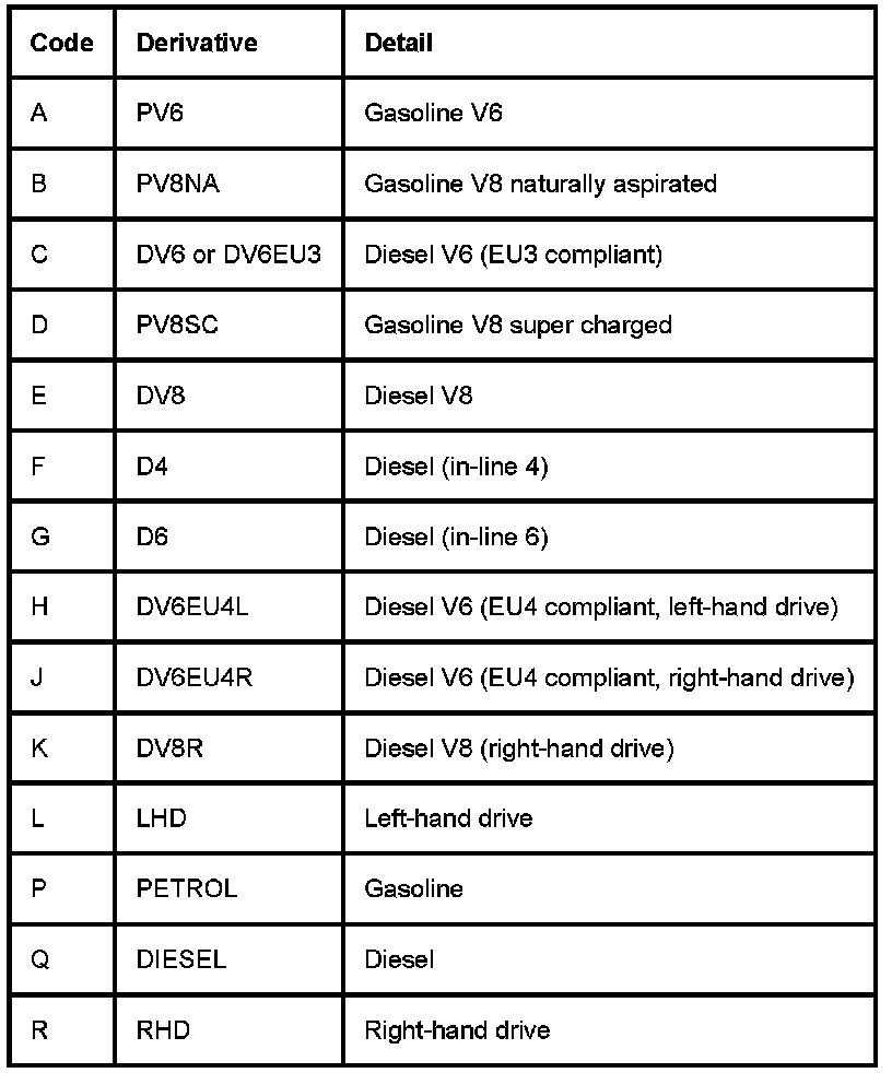 To provide more accurate connector information, in some instances, a suffix has been added to the connector that identifies the vehicle harness derivative; refer to the Connector number suffix table below.