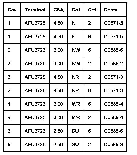 1. Cav: The connector pin (cavity) number.