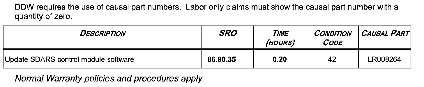 In the event of a customer concern of the above, refer to the Repair Procedure outlined below to update the SDARS control module software.
