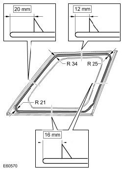 7. Apply a continuous bead of sealant to the rear quarter window glass as shown.