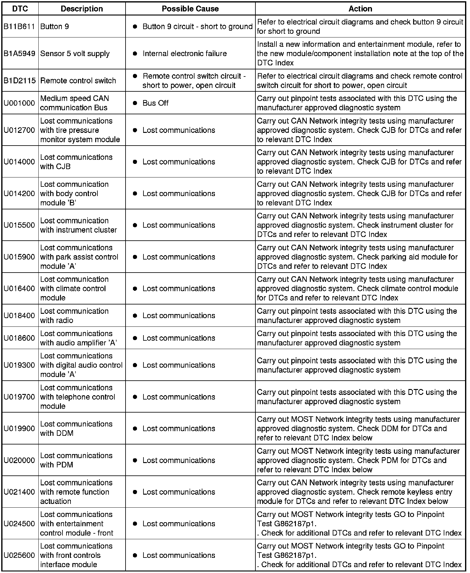 Diagnostic Trouble Code (DTC) Index