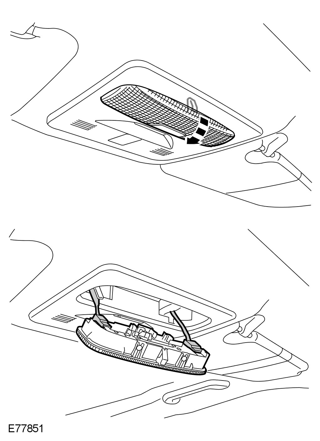 1 Remove the passenger air bag deactivation warning lamp.
