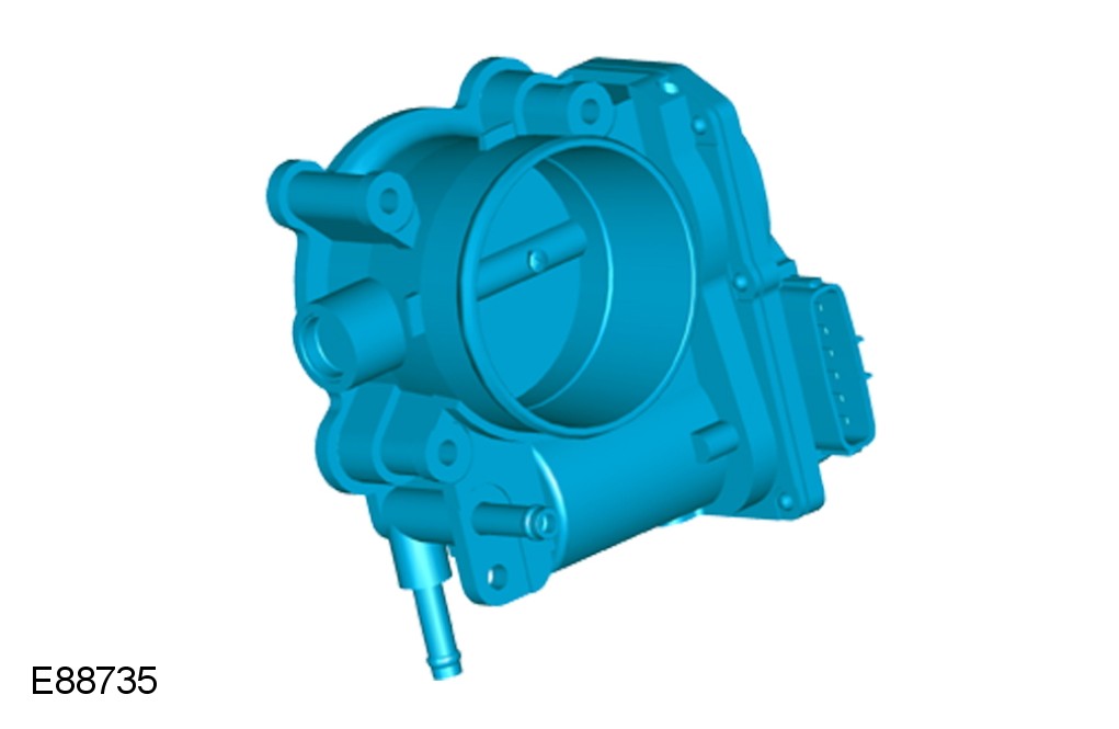 The electric throttle is located at the entrance of the intake manifold and is secured to the manifold with four Torx head bolts. The throttle also provides for the connection of the air cleaner housing outlet pipe which is secured to the throttle body with a clip.