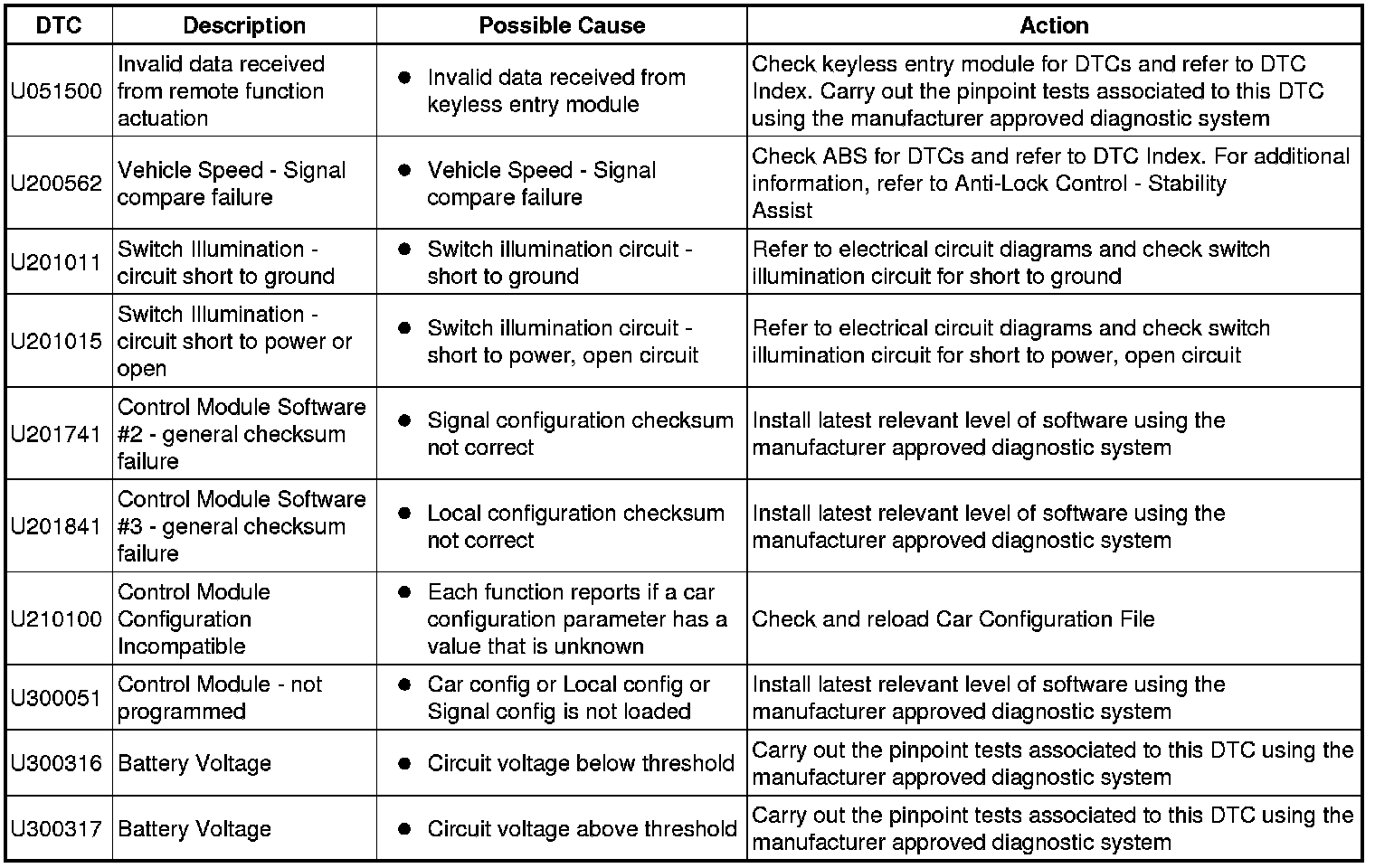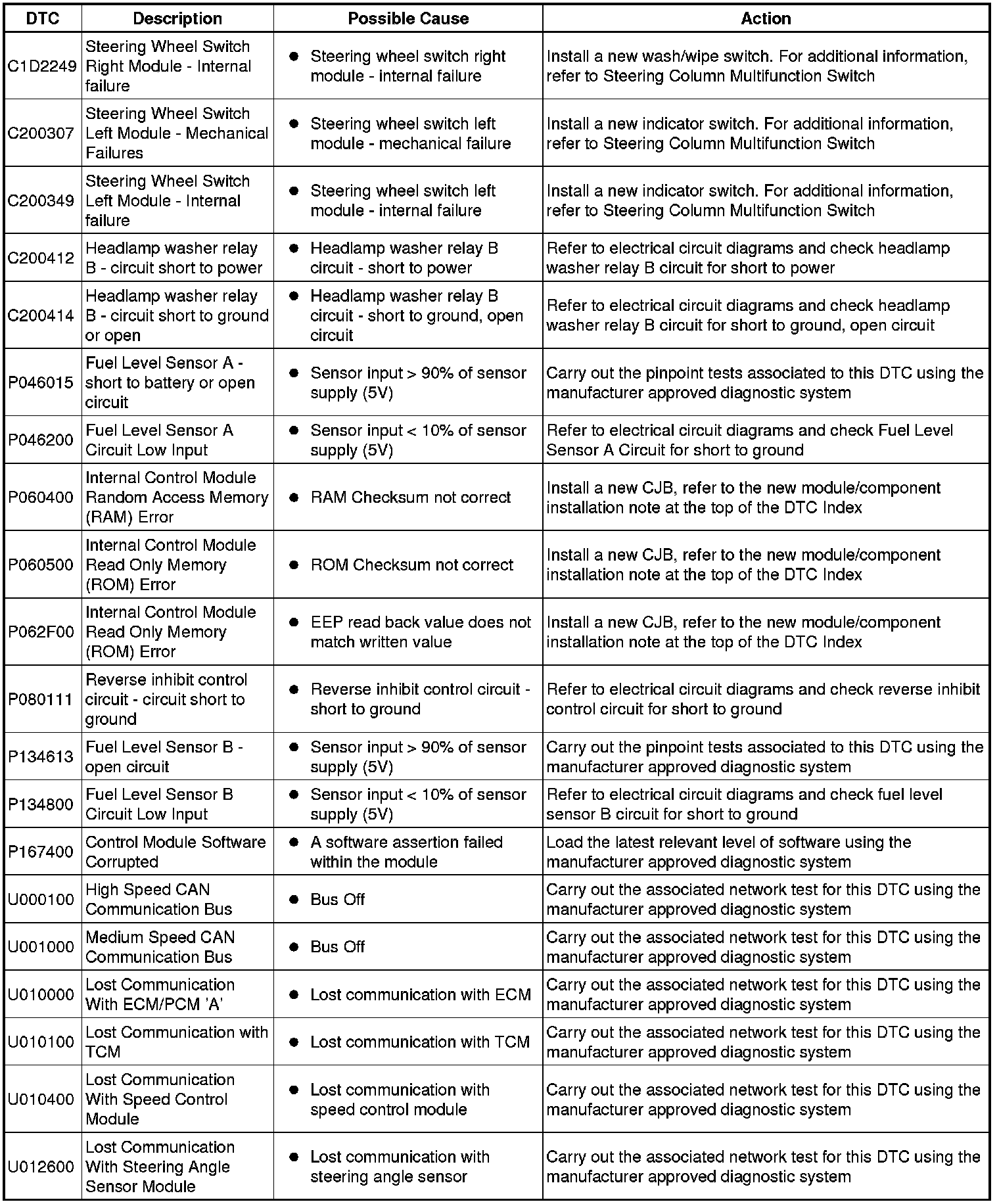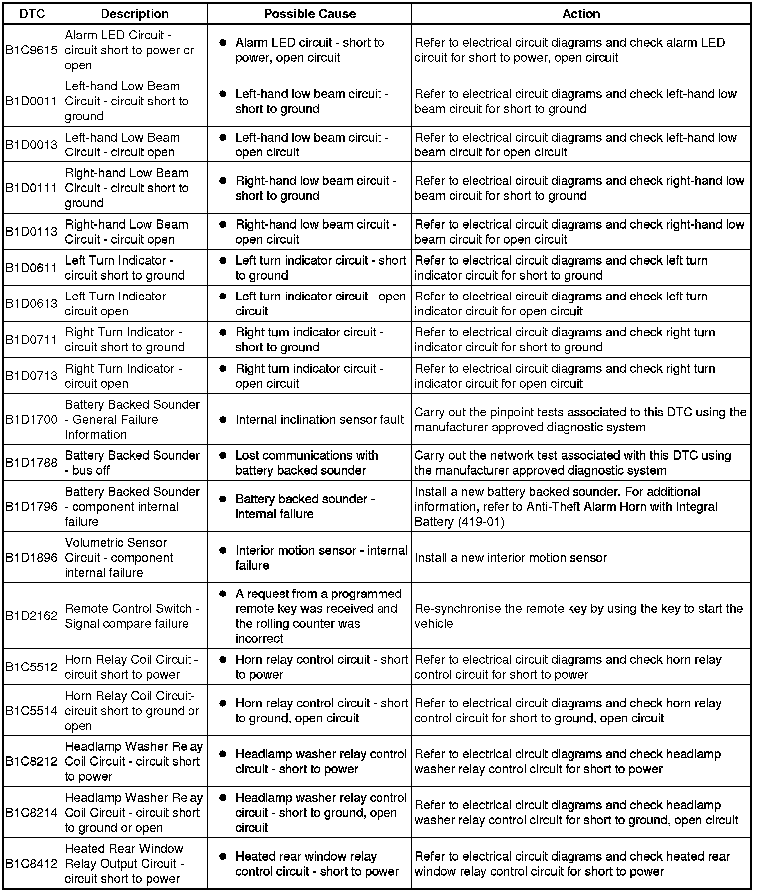 Generic scan tools may not read the codes listed, or may read only five digit codes. Match the five digits from the scan tool to the first five digits of the seven digit code listed to identify the fault (the last two digits give extra information read by the manufacturer-approved diagnostic system).