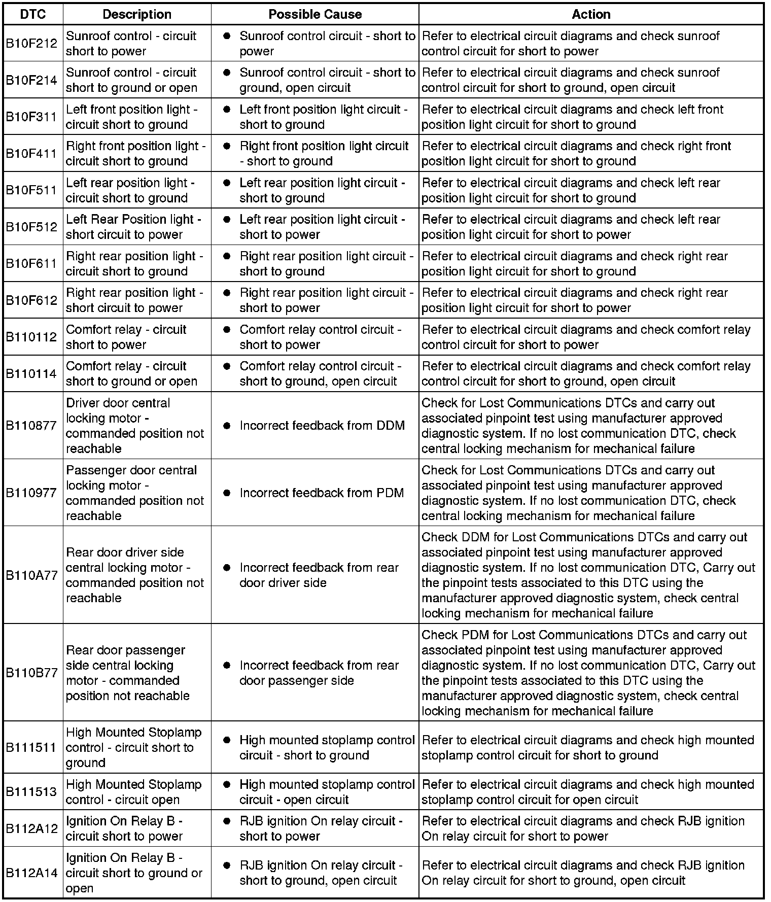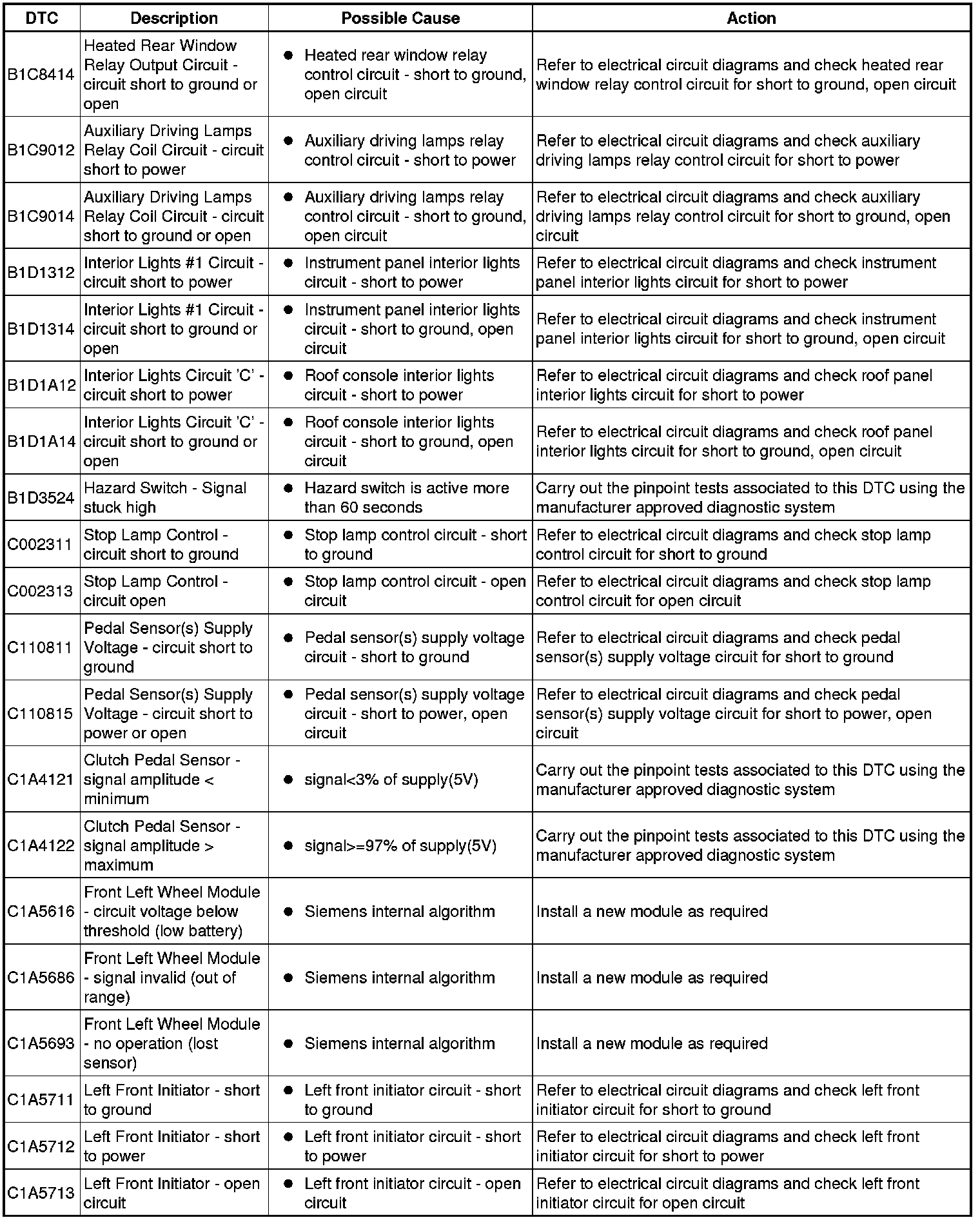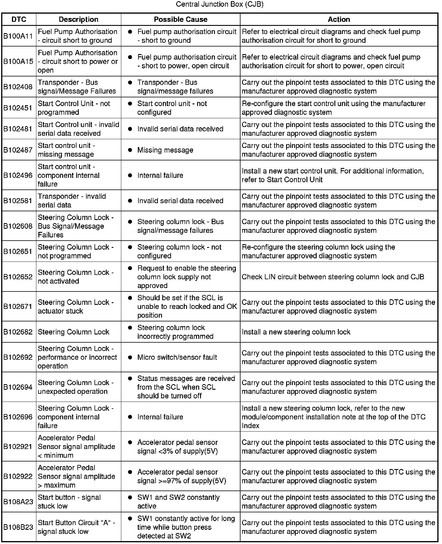 Generic scan tools may not read the codes listed, or may read only five digit codes. Match the five digits from the scan tool to the first five digits of the seven digit code listed to identify the fault (the last two digits give extra information read by the manufacturer-approved diagnostic system).