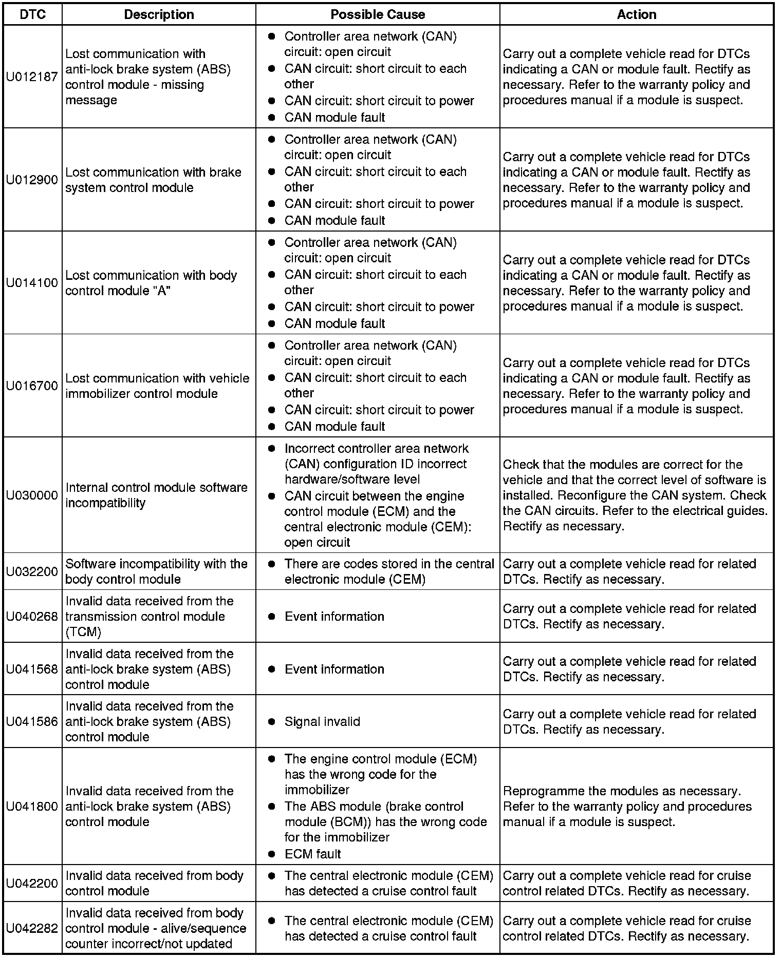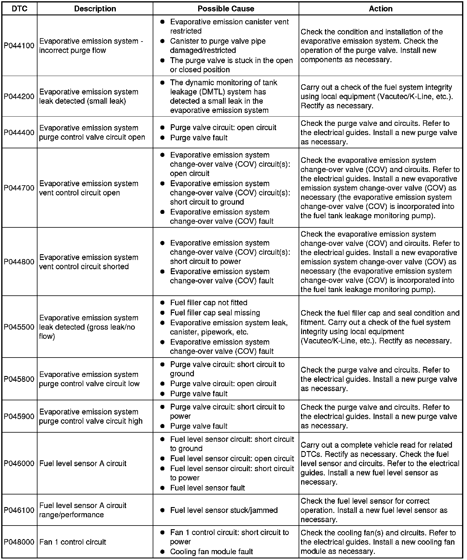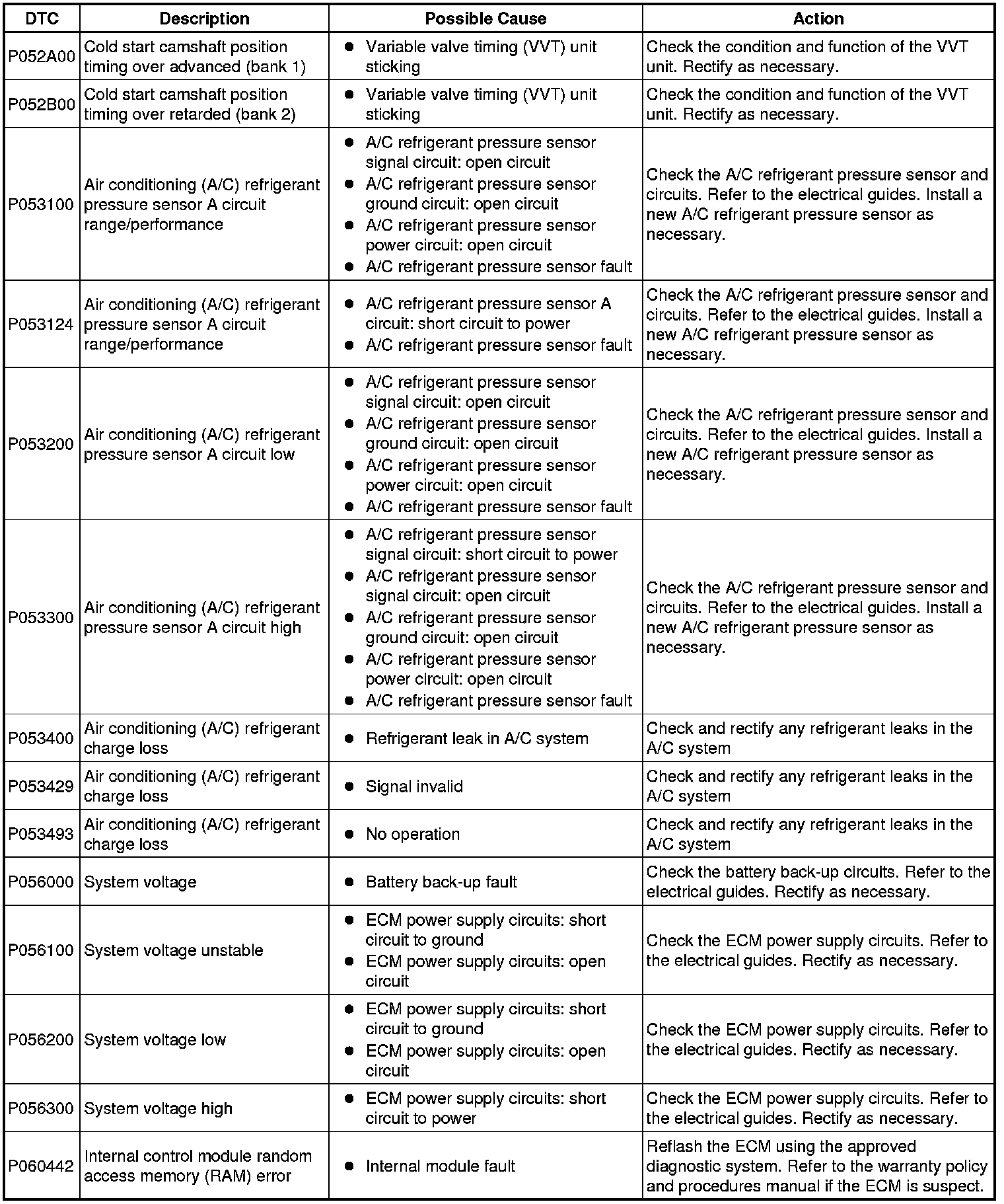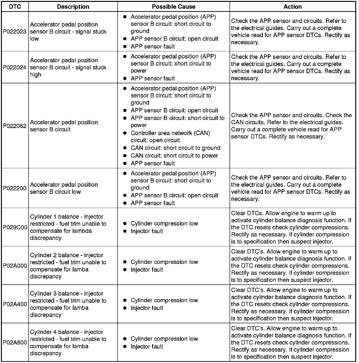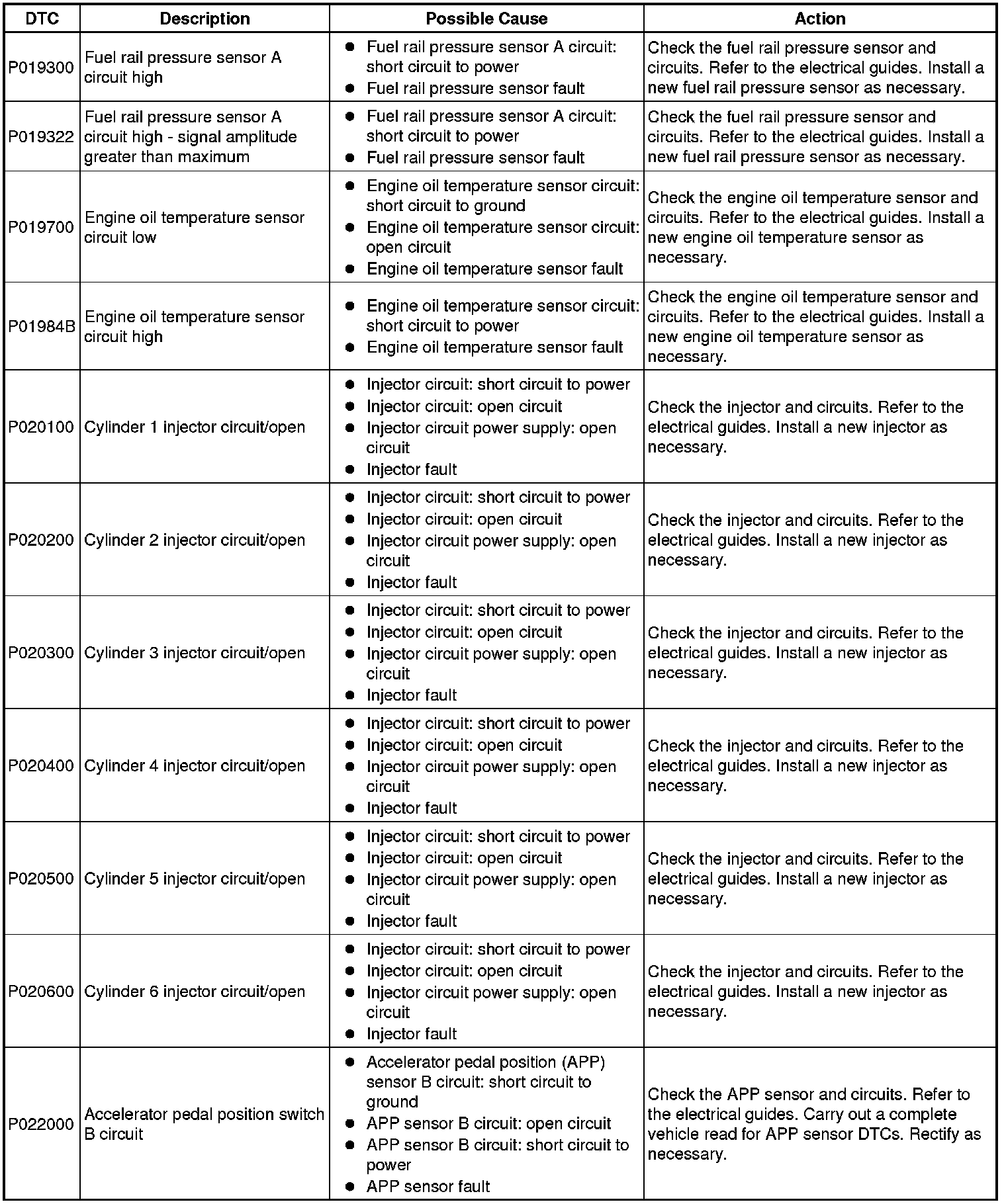 Diagnostic Trouble Code Descriptions