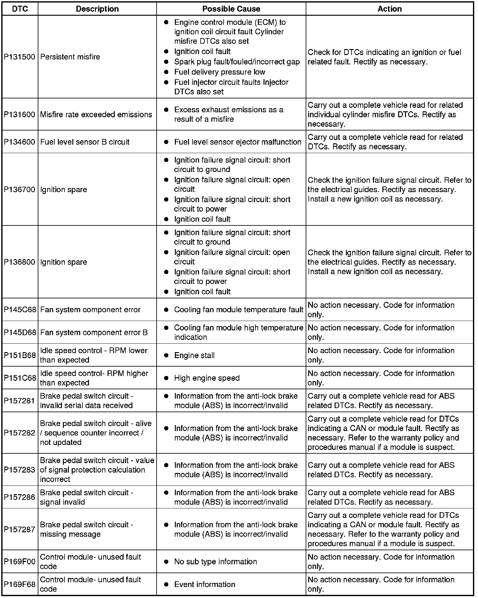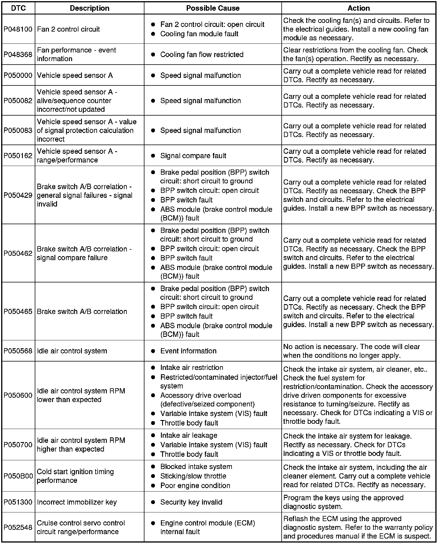 Diagnostic Trouble Code (DTC) Index