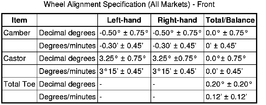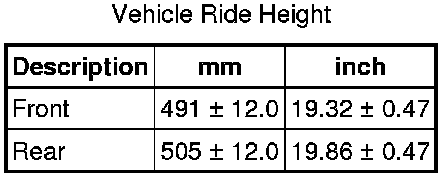 All figures are with vehicle at 'Showroom' ride height - full fluids, full tank of fuel, no occupants/luggage, tires inflated to normal pressures
