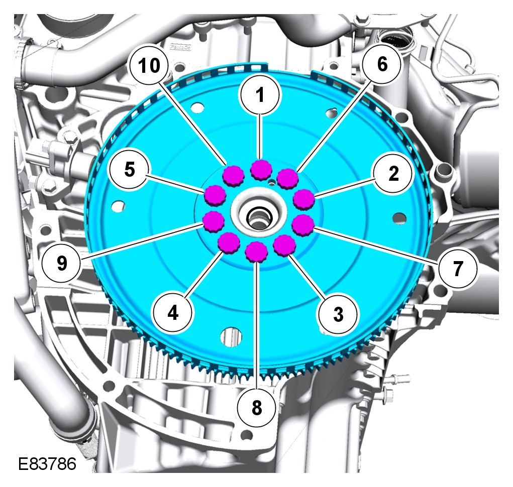 Install the flexplate and tighten the bolts as illustrated.