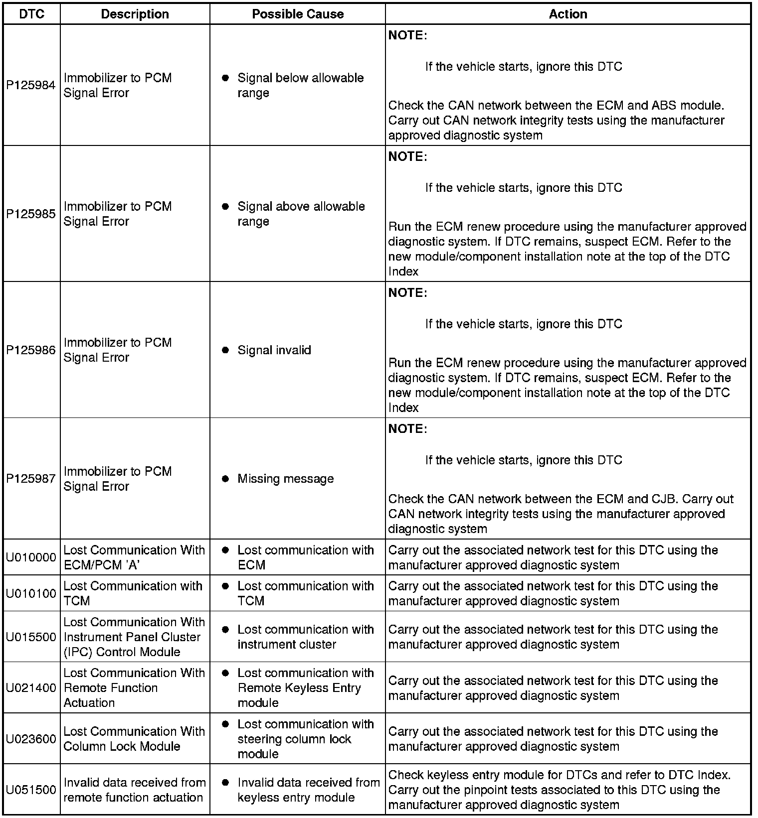 Generic scan tools may not read the codes listed, or may read only five digit codes. Match the five digits from the scan tool to the first five digits of the seven digit code listed to identify the fault (the last two digits give additional information read by the manufacturer approved diagnostic system).