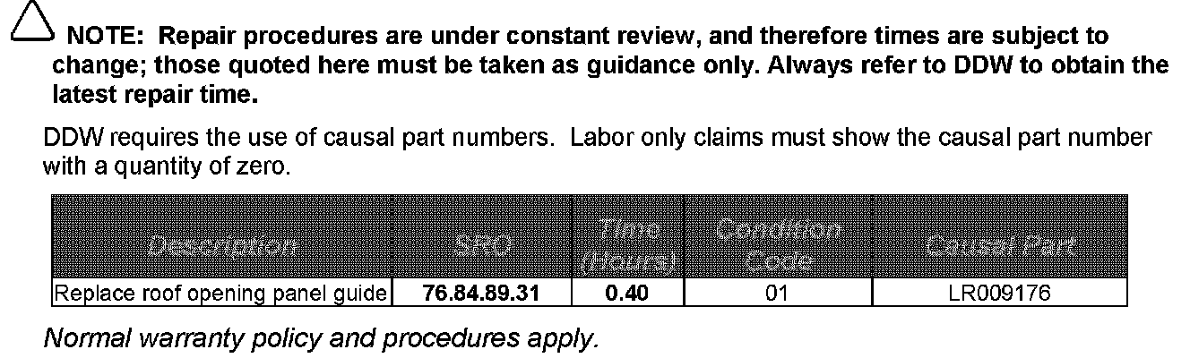 In the event of a customer concern of the above issue, install new roof opening panel guides by following the Repair Procedure outlined below.