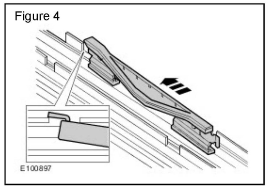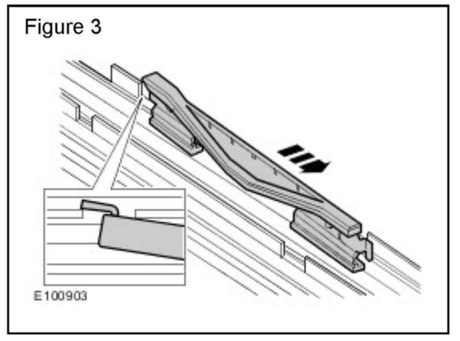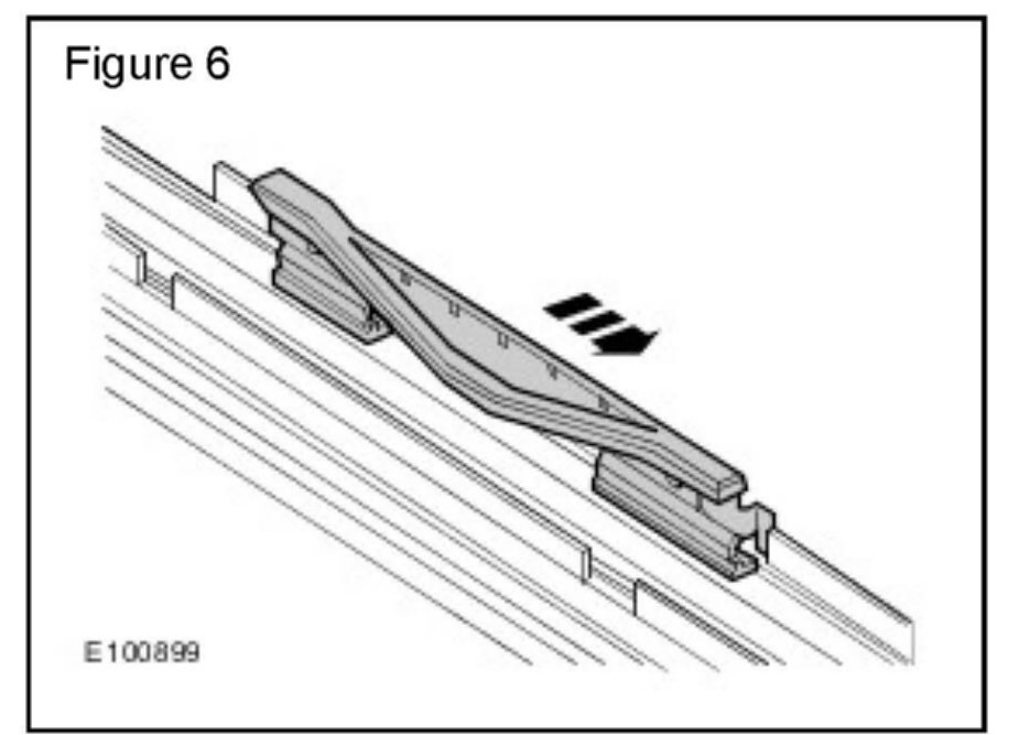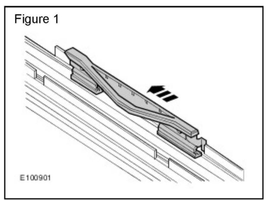 2. Using a suitable tool, slide the roof opening panel guide rearwards until the front of the guide is released. (Figure 1)