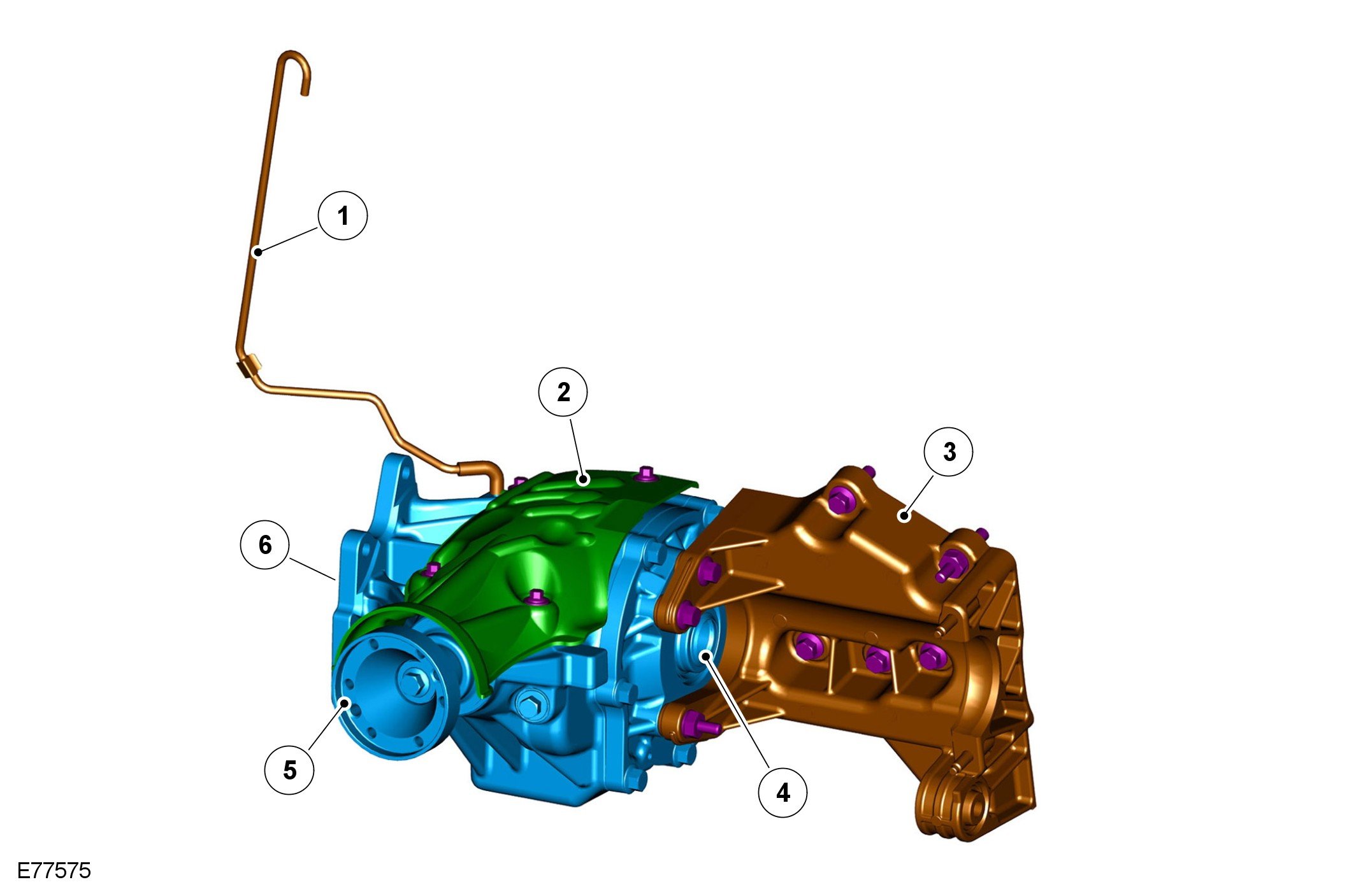 Drive from the transmission differential drives the crown wheel drive gear, which in turn rotates the pinion gear. Drive is passed from the pinion gear to the drive shaft and the rear differential via the drive flange attached to the pinion gear shaft.