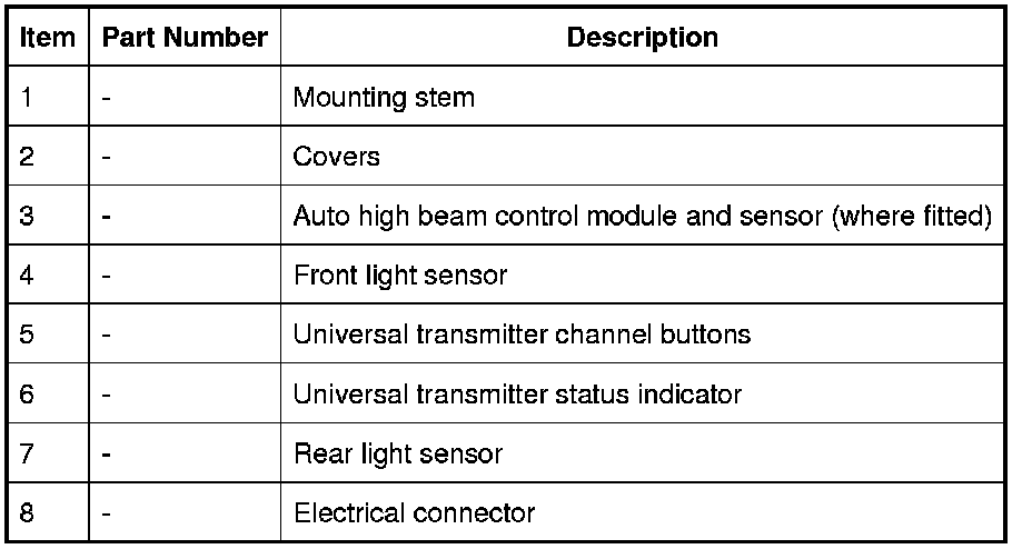 The interior mirror incorporates either manual dimming or automatic dimming. Depending on vehicle model and market, the automatic dimming interior mirror may also incorporate: