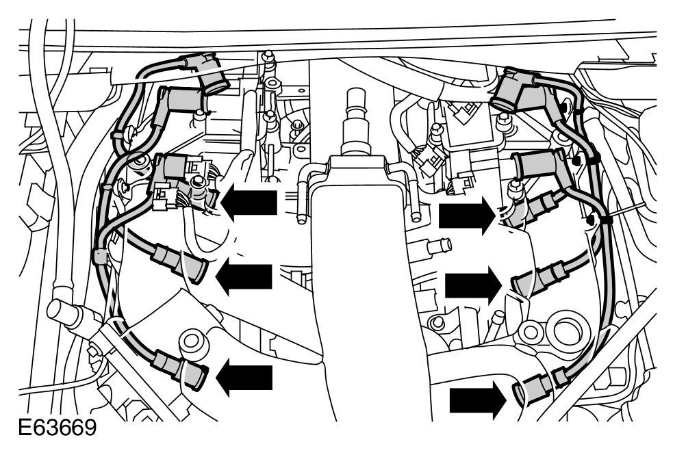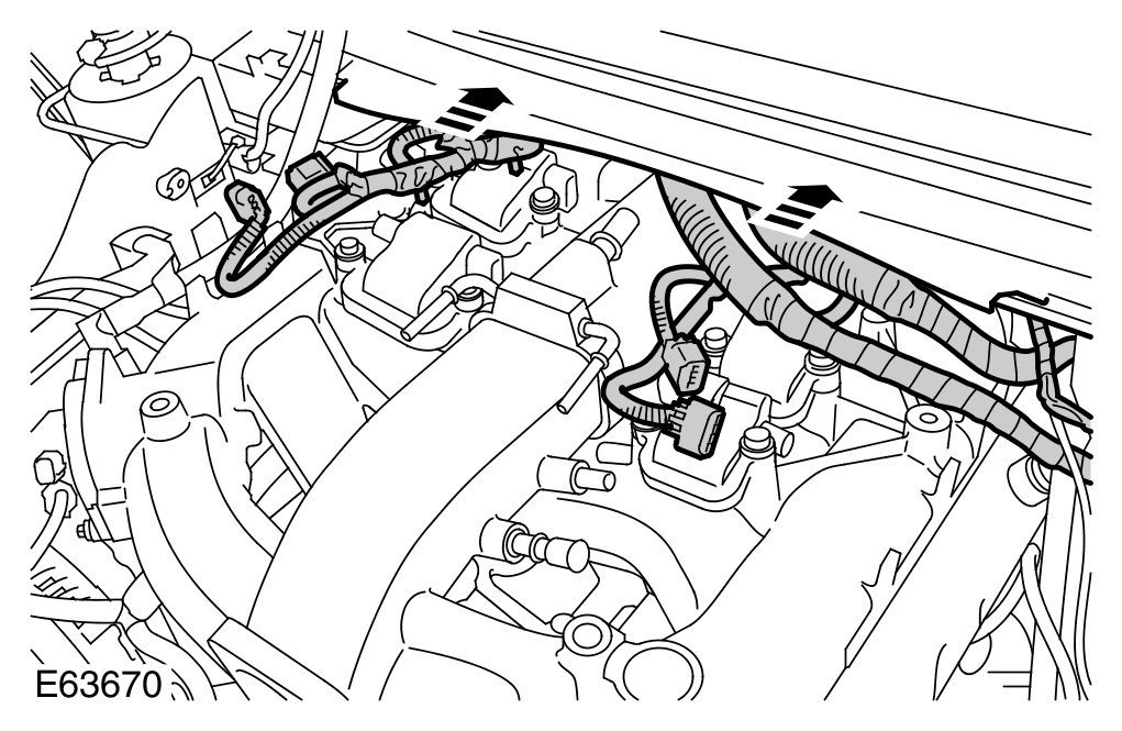- Early vehicles only: Disconnect the LH and RH cylinder head, rear fuel injector electrical connectors.