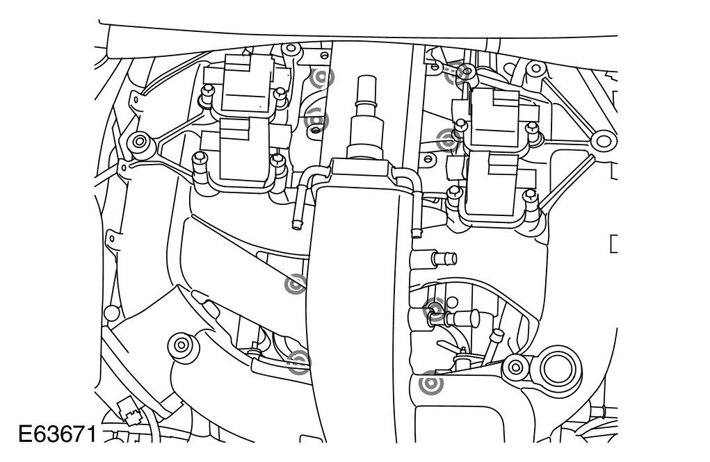 - Evenly and progressively tighten the bolts in the sequence shown to 10 Nm (7 lb.ft).