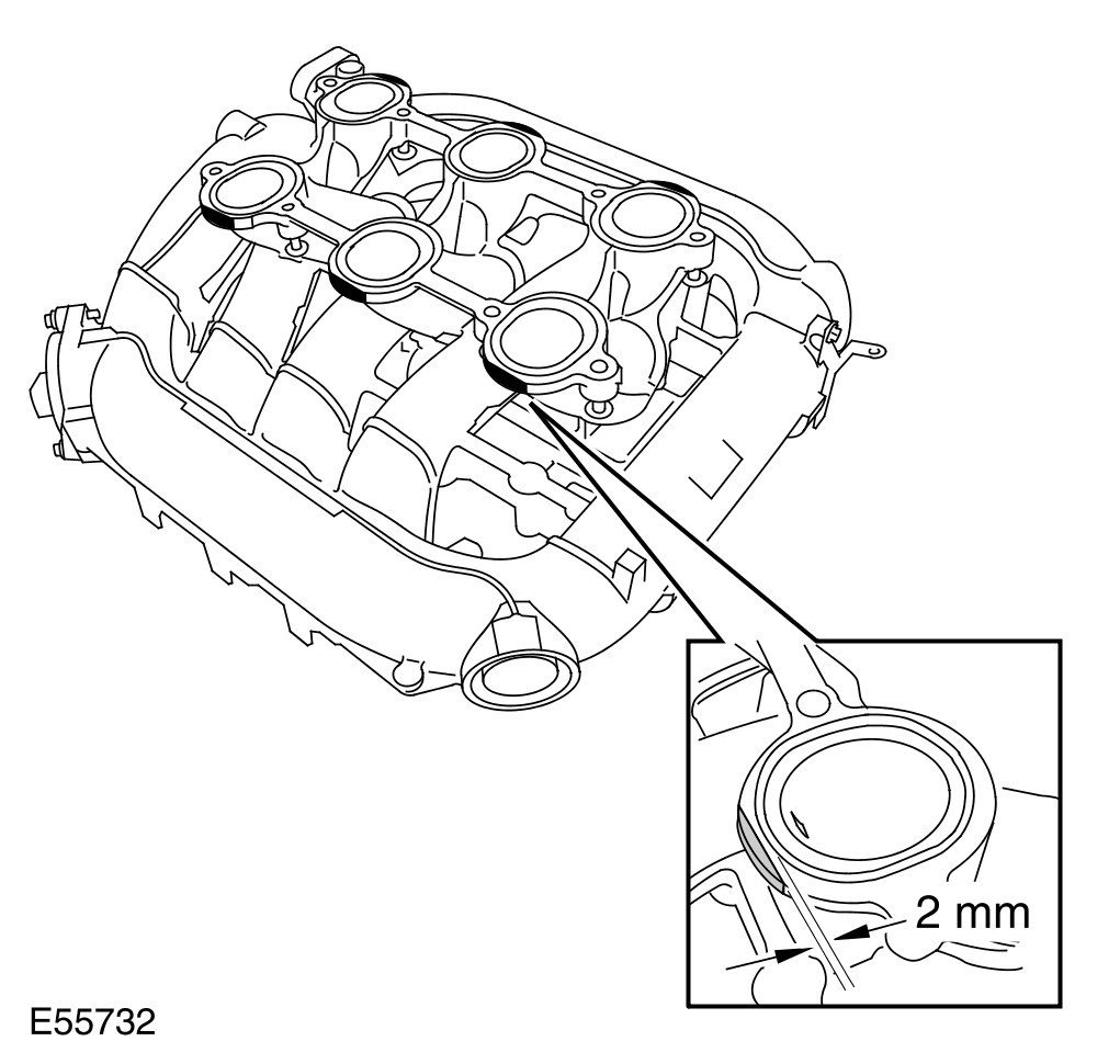 2 Early vehicles only: Remove excess material from the outside edges of the 6 intake manifold flange faces; file to within 2 mm of the gasket edge.