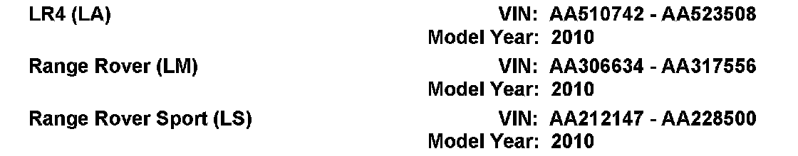 AFFECTED VEHICLE RANGE: