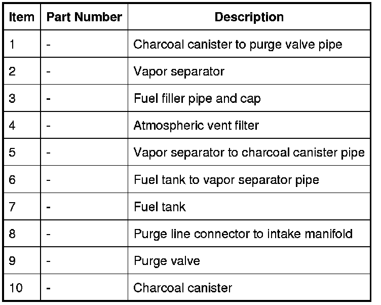 Fuel vapor is generated by the fuel in the tank and the amount of vapor produced increases as the fuel heats up. Fuel vapor flows to the charcoal canister through the tank vent pipes, via a liquid/vapor separator.