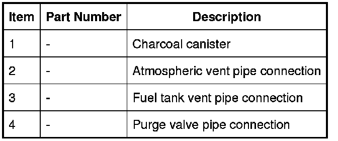 The canister has three connections for attachment of the pipes from the atmospheric vent, the purge valve and the tank vent. On NAS vehicles, the DMTL pump is installed between the atmospheric vent connection and the atmospheric vent pipe.