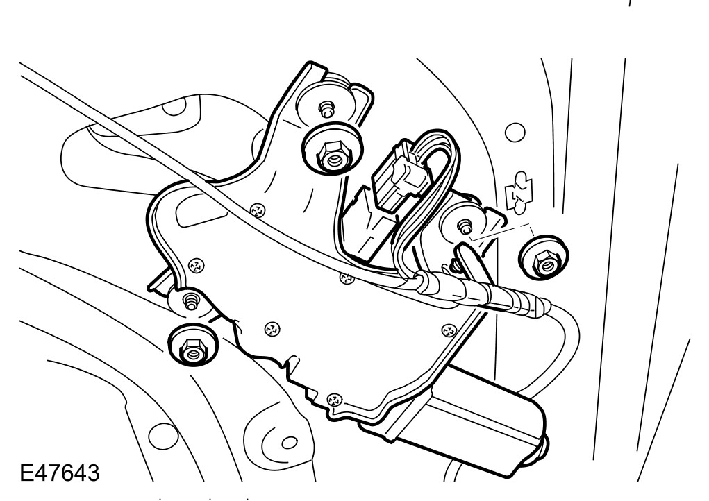2 Remove the rear window wiper arm. For additional information, refer to Rear Wiper Pivot Arm Rear Wiper Pivot Arm