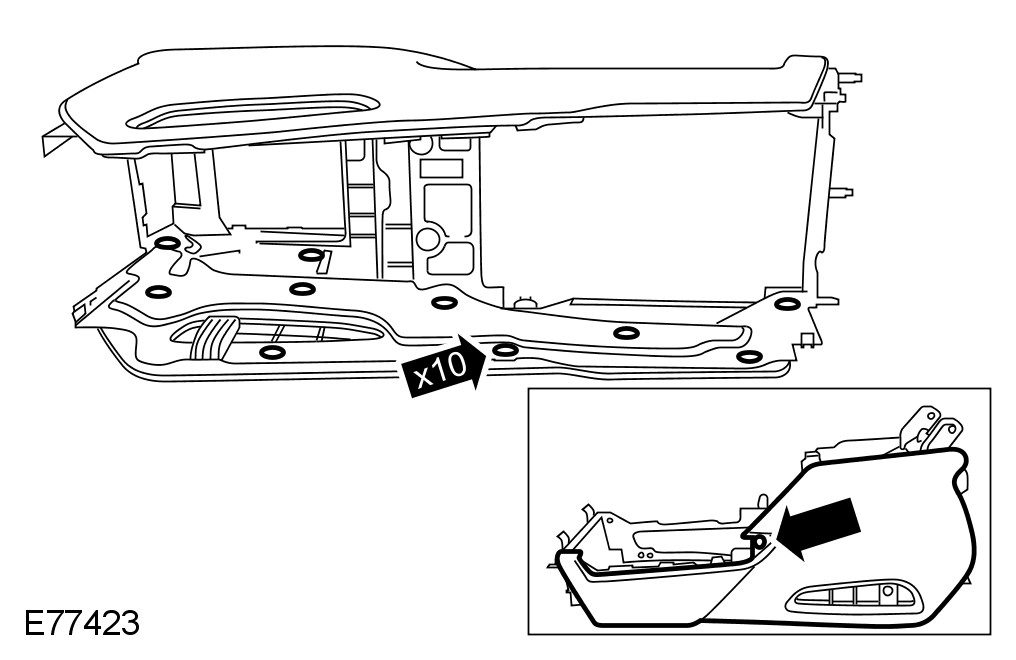 22 Install the LH floor console extension. For additional information, refer to Floor Console Extension Floor Console Extension