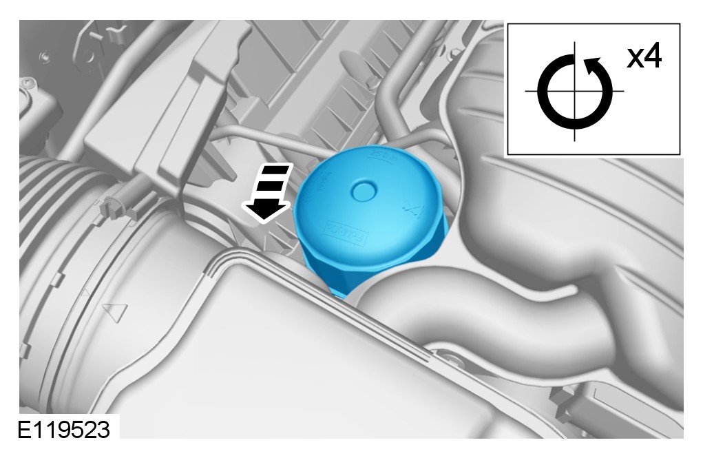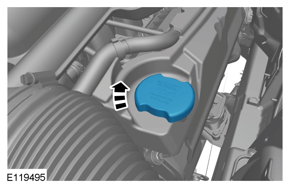 CAUTION: Correct installation of the oil filler cap can be obtained by tightening the cap until hard stop.